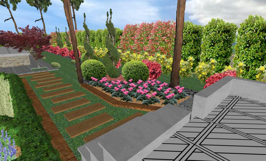 - Να εντάξει τα υπάρχοντα πεύκα στο σχεδιασμό του κήπου