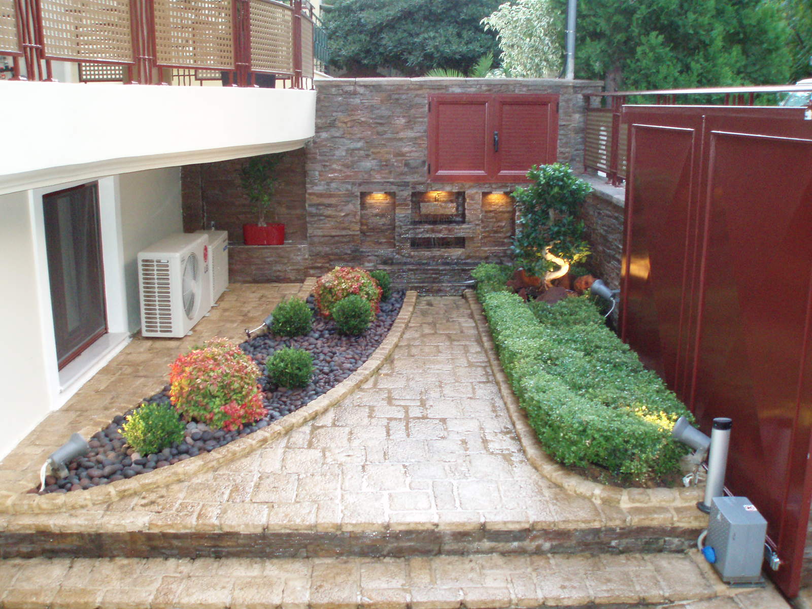 Διαμόρφωση παρτεριών εισόδου κατοικίας στο Kαματερό, έκτασης περίπου 7 τ.μ. Βάση των απαιτήσεων του ιδιοκτήτη, στόχος του σχεδιασμού ήταν: