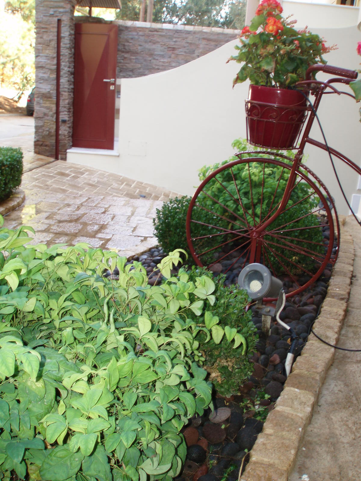 5. Τέλος , το κόκκινο ποδήλατο , μία ρετρό διακοσμητική πρόταση και παράλληλα μία πολύ καλή ευκαιρία για την τοποθέτηση των απαραιτήτων εποχιακών φυτών.