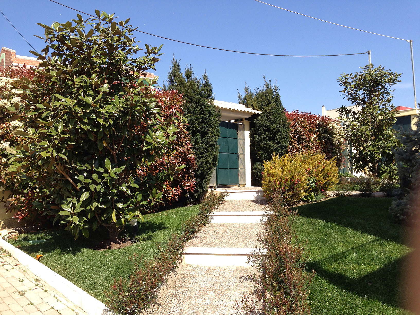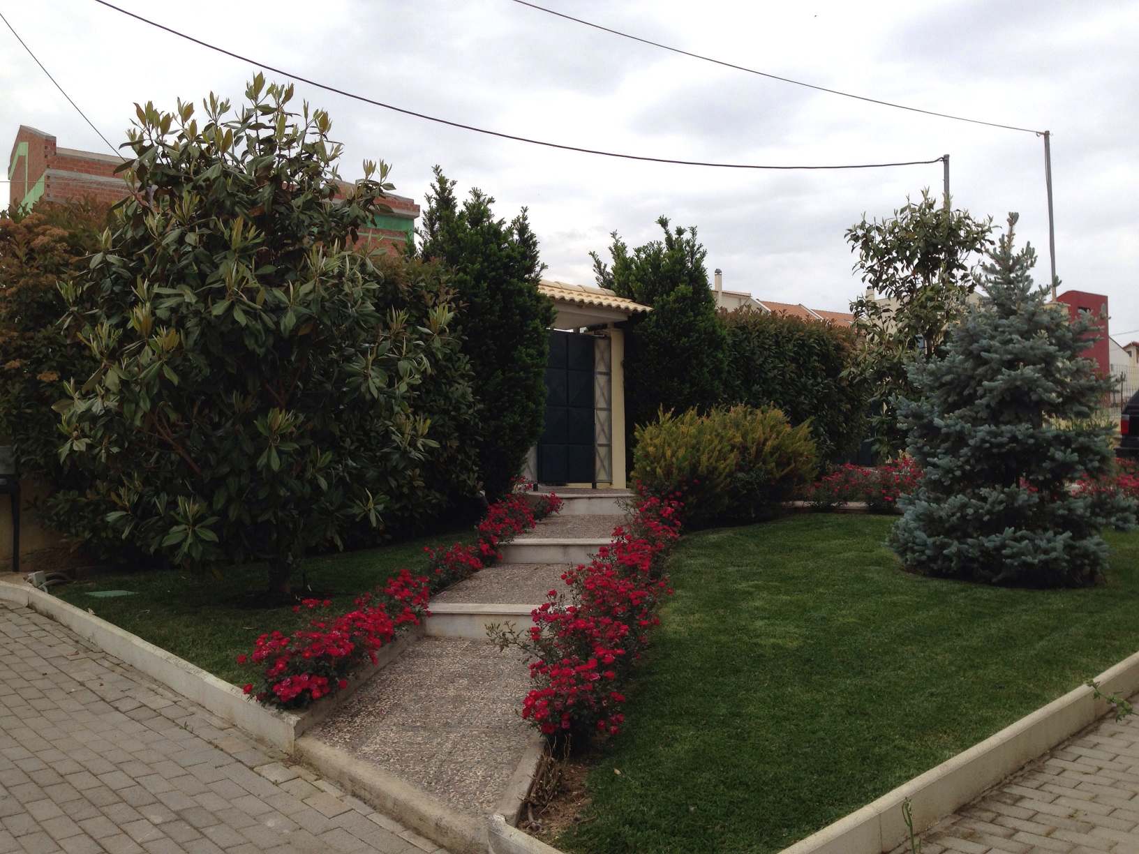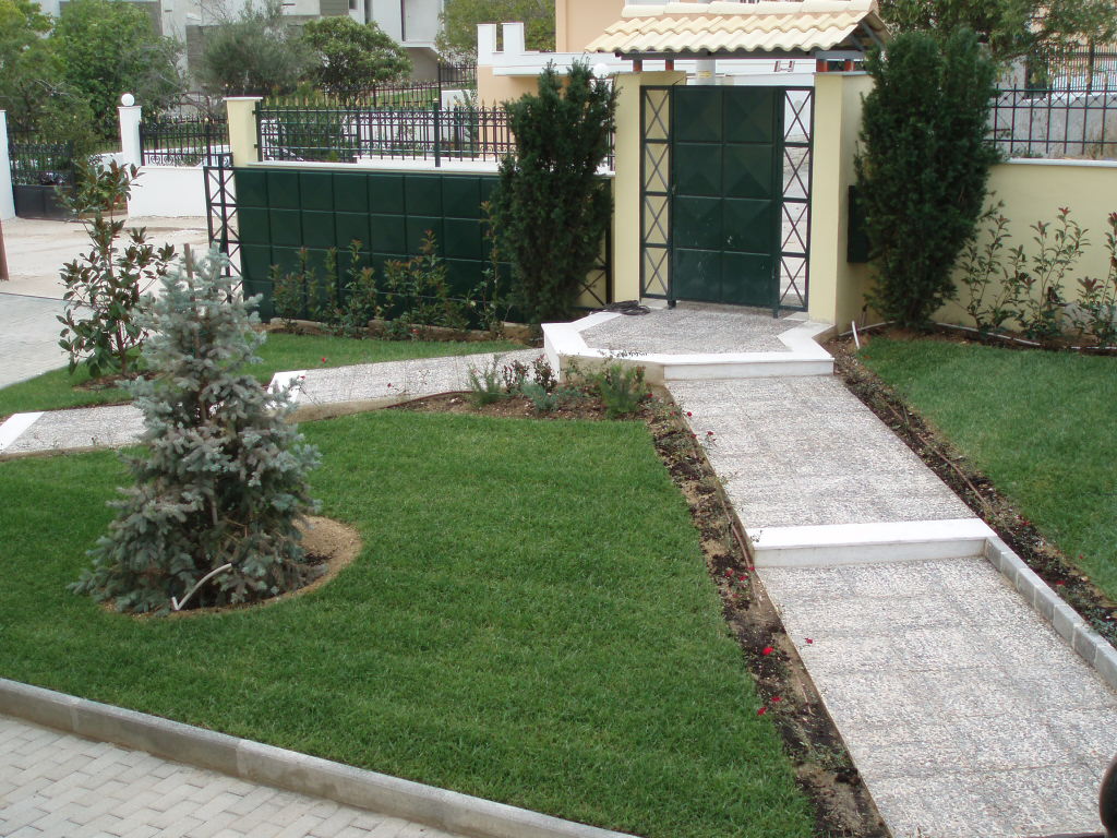 Η επιλογή των φυτών έγινε με γνώμονα τις εδαφοκλιματικές συνθήκες της περιοχής καθώς επίσης την απαίτηση των ιδιοκτητών για αειθαλή δέντρα στην κεντρική είσοδο.Επιλέχτηκαν τελικά 2 Μανόλιες , 1 Έλατο Μπλε , 2 Τάξοι Κολώνα περιστοιχισμένοι από Τριανταφυλλιές κόκκινες νάνα , Γρεβιλλέες , Αμπέλιες ροζ και Φωτίνιες. Εξωτερικά Thuja Pyramidalis , Τhuja compacta και ενδιάμεσα Δεντρολίβανο έρπων ή εποχιακά.