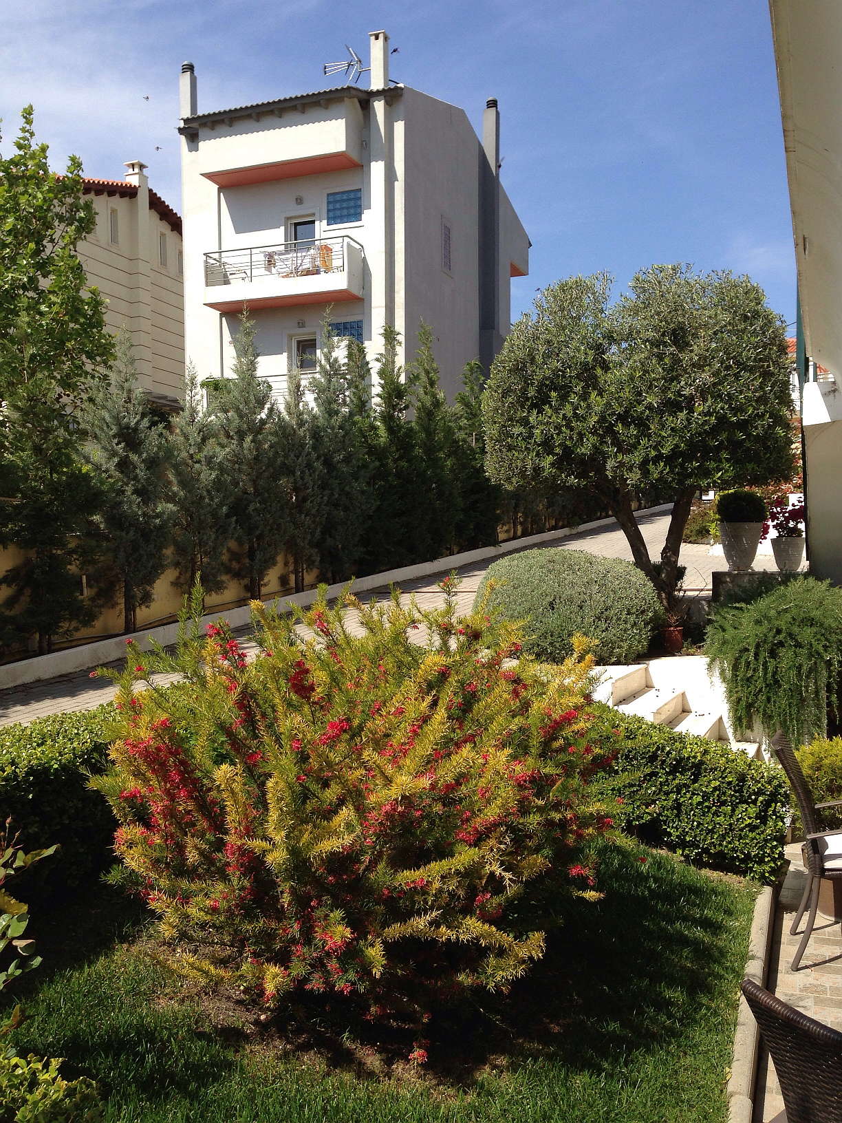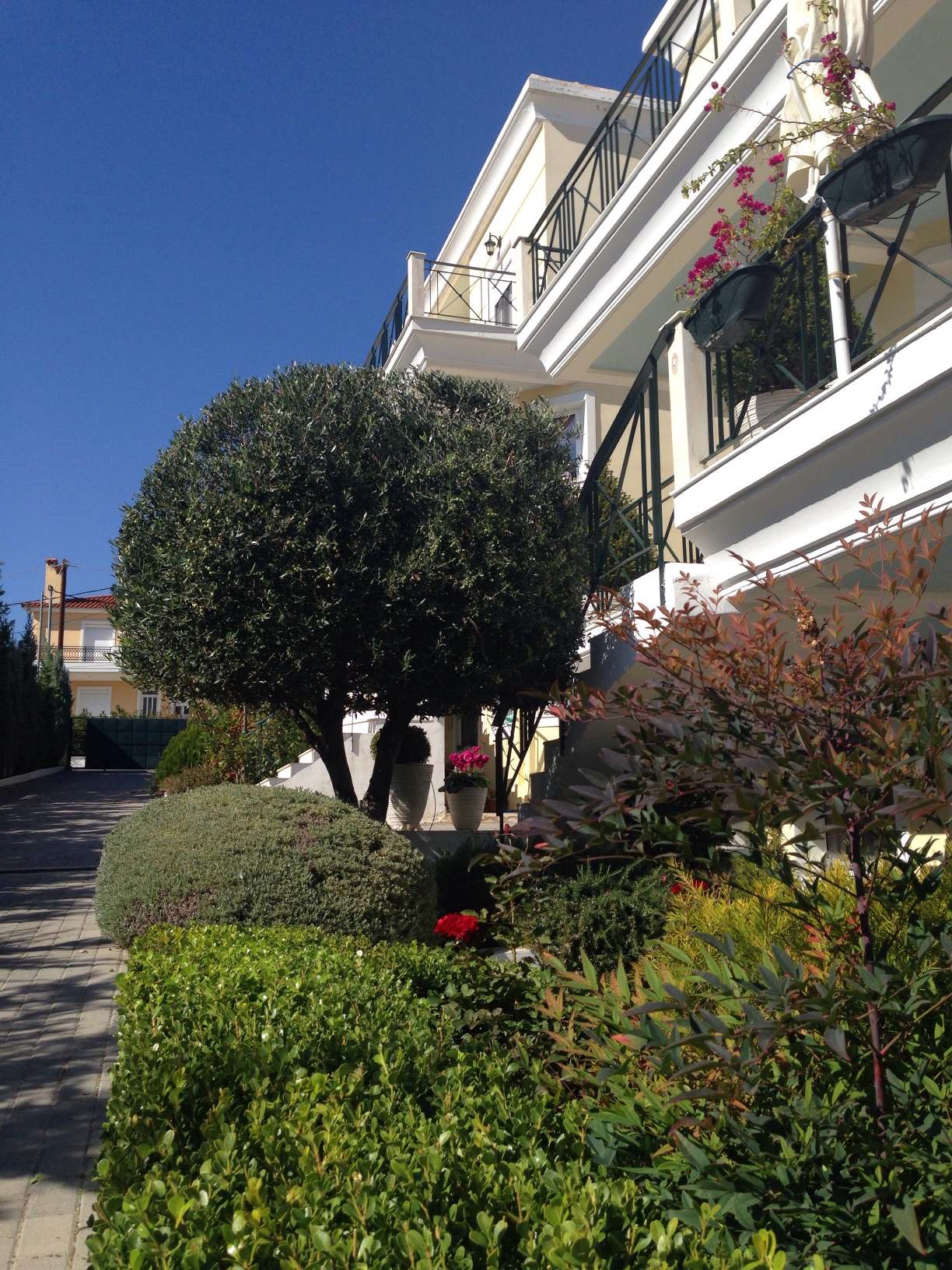Έμφαση δόθηκε και στα μπαλκόνια των μεζονετών με την προσθήκη πλαστικών γλαστρών Ιταλίας – της γνωστής εταιρείας Serralunga , εξαιρετικής ποιότητας πήλινων γλαστρών τονίζοντας τις Δάφνες Απόλλωνος , την Γαρδένια ,τα Leylandii Spiral , τους Τάξους Πυραμίδα , τις Orchid cymbidium .