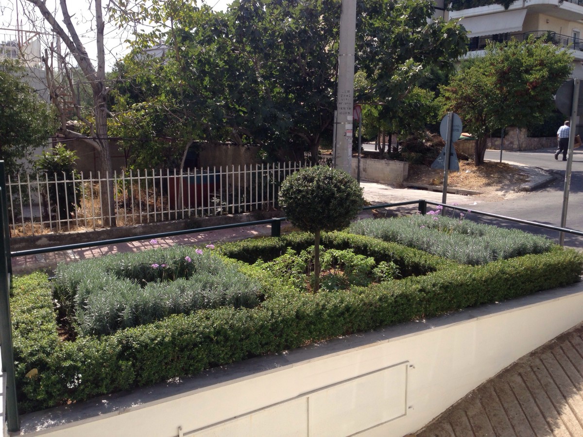 Ο κήπος ανέρχεται στα 20 τ.μ. περίπου και βρίσκεται σε στη είσοδο φαρμακείου στην περιοχή των Αγίων Αναργύρων και συγκεκριμένα στην Ανάκασα. Αποτελείται από ελληνικά φυτά που χρησιμοποιούνται στην παρασκευή φαρμακευτικών σκευασμάτων, η επιλογή των οποίων έγινε με γνώμονα την λιγότερη δυνατή συντήρηση και το μικρό τελικό τους ύψος, προκειμένου να μην κρύβουν την πρόσοψη του φαρμακείου. Έτσι , χρησιμοποιήθηκαν Λεβάντες, Μυρτιές, Ελιά κορμός μπάλα, Σάλβια και Τουλμπάχια.